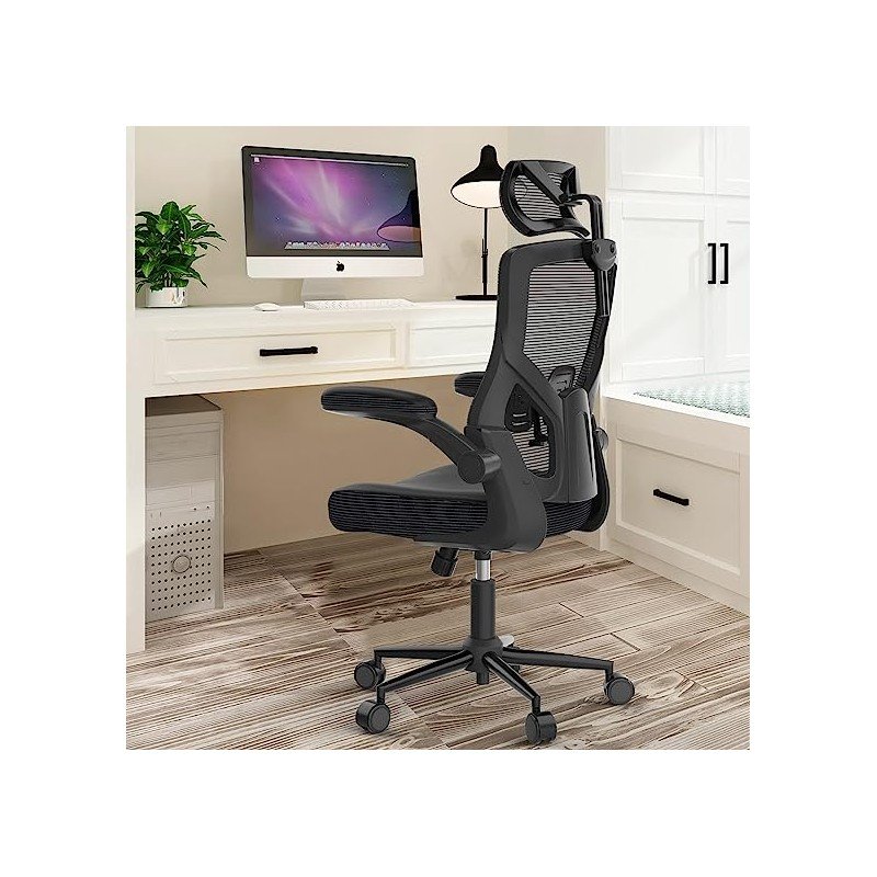 ???? ?????? ?????, Ergonomic Mesh Desk Chair, High Back Computer Chair- Adjustable Headrest with Flip-Up Arms, Lumbar Support, Swivel Executive Task Chair (Modern, Black)