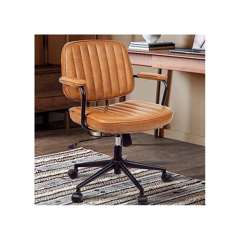 Arts wish Mid Century Office Chair Leather Desk Chair Brown Office Desk Chair Home Office Chair with Wheels and Arms
