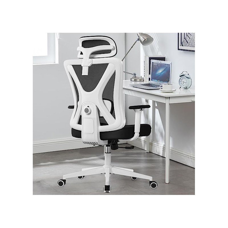 KERDOM Ergonomic Office Chair, Rolling Swivel Executive Desk Chair, Breathable Mesh Gaming Chair with Adjustable Headrest, 3D Armrest and Lumbar Support for Home Office White