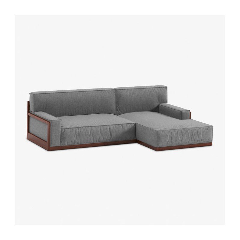 JOBO ספת שזלונג מעוצבת בבד אריג משולבת עץ מלא