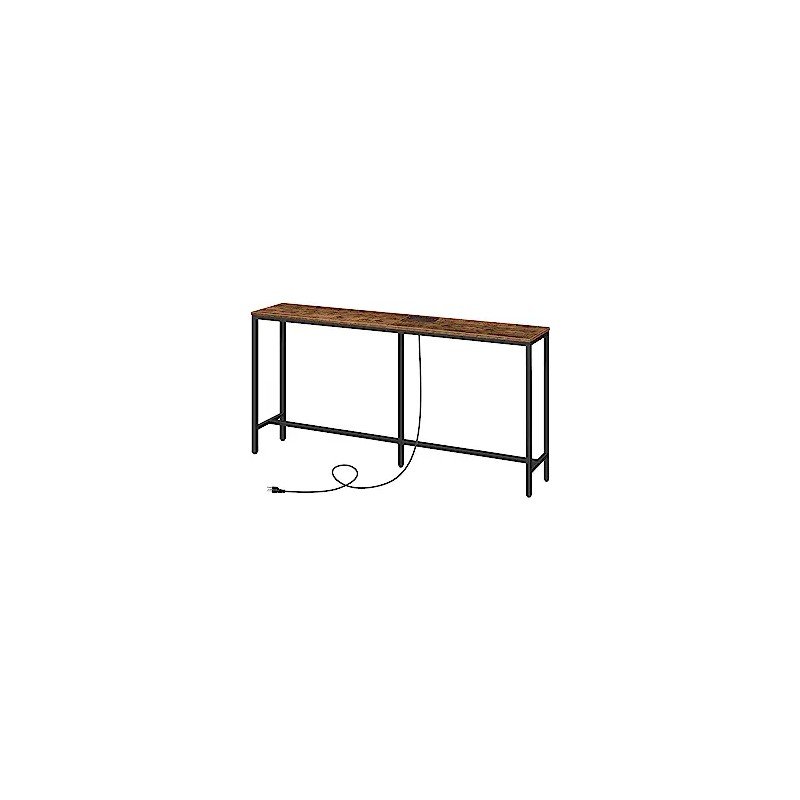 ALLOSWELL Console Table with Power Outlet, 63" Narrow Sofa Industrial Entryway Behind Couch Table with USB Ports for Entryway, Hallway, Foyer, Living Room, Bedroom CTHR16E01