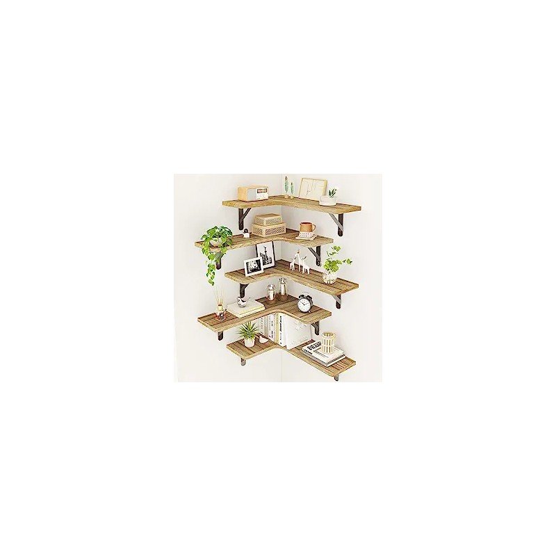Fixwal Corner Floating Shelves, Wall Mounted Corner Shelf Set of 5, Rustic Wood Wall Shelves for Bathroom, Kitchen, Bedroom or Living Room (Carbonized Black)
