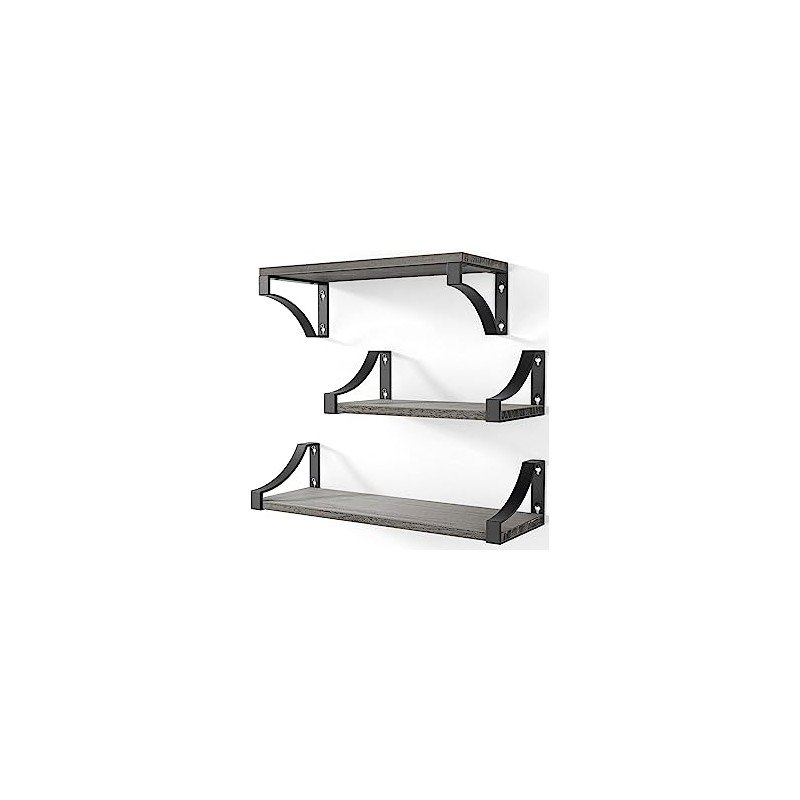 AMADA HOMEFURNISHING Floating Shelves Set of 3 with Heavy Duty Metal Frame, Hold up to 55lbs, Rustic Wood Wall Shelves for Bedroom, Bathroom, Living Room, Kitchen, Storage & Decoration, Gray