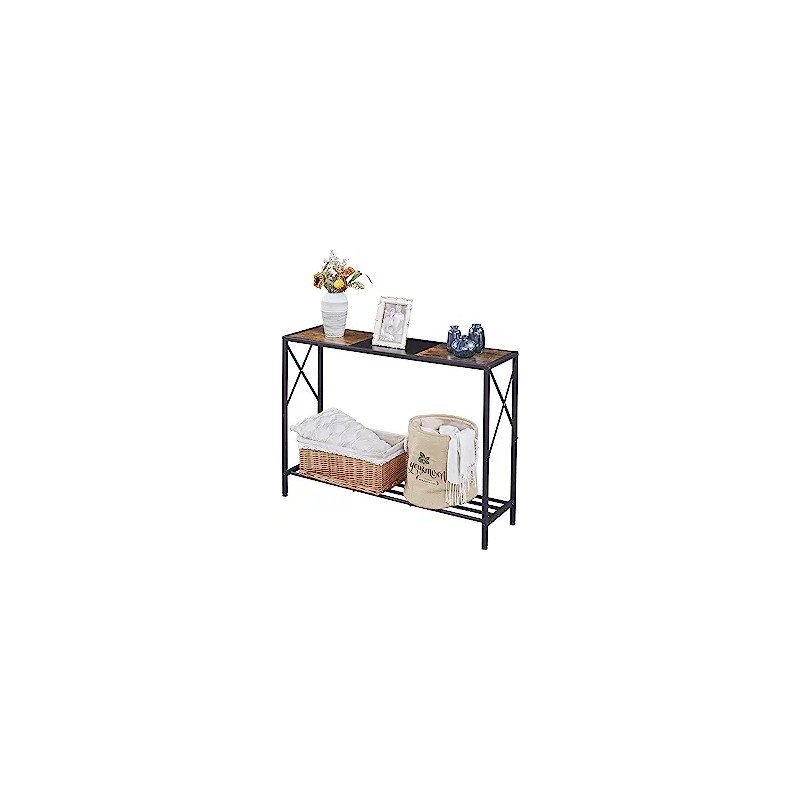 - Industrial Sofa Table: Ecoprsio couch table with vintage natural looking top panel and mesh shelves, it can provide you with extra storage space, make your space more elegant. Table Size: 32*13.8*31.5 inches.