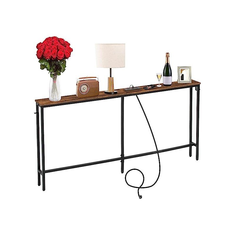 SUCRSIXBRO Console Table with Charging Station, 63" Narrow Sofa Table, Entryway Table with Outlets and USB Ports,Easy Assembly,Living Room, Bedroom,Rustic Brown