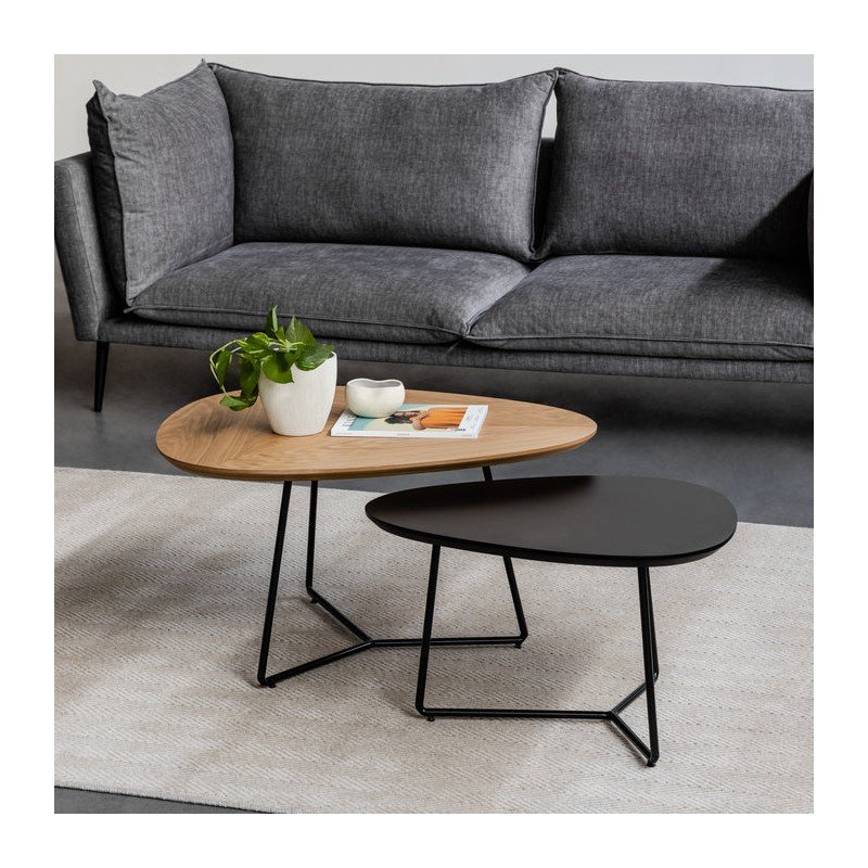 BLANCHE סט שולחנות בגווני עץ אלון טבעי ושחור