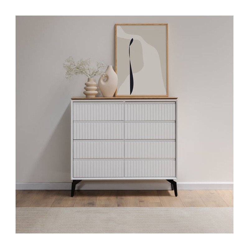 GENOA שידת מגירות עם חיתוכים דקורטיביים בשילוב גוון עץ אלון טבעי